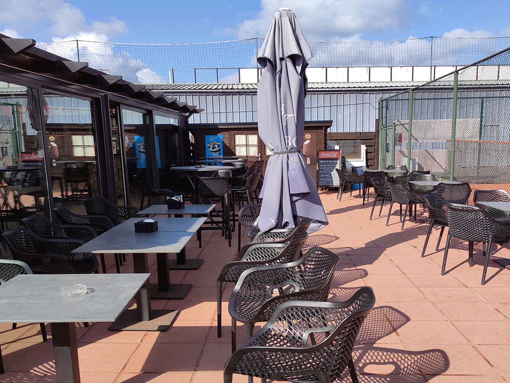 Bij goed weer kan je genieten van ons groot terras met zicht op onze tennisterreinen.