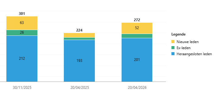Ledenaantal op 20 april 2026.