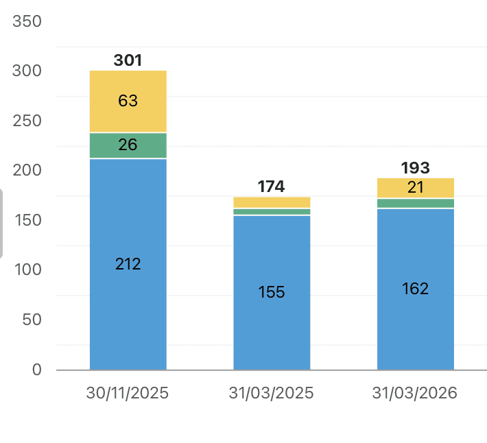 Ledental op 31 maart 2026.
